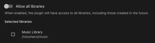Some plugins are user-scoped, meaning they operate on a per-user basis (like scrobblers). For these plugins, you need to configure which users have access: